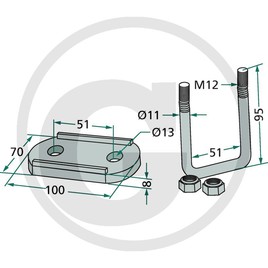 med självlåsande mutter och hållplatta för ram 50 x 50 mm