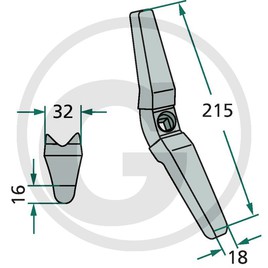 - Mått (mm):Längd = 215, Tjocklek = 16, Arbetsbredd = 18