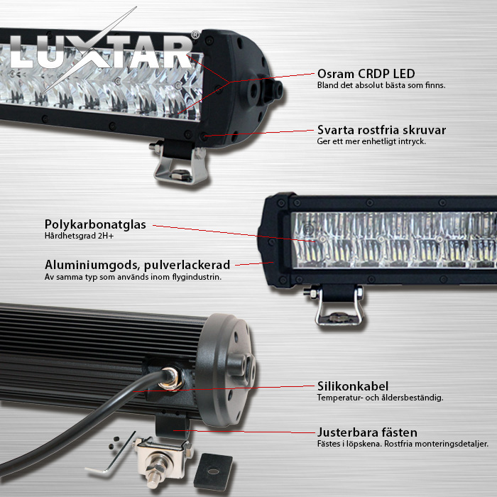 Luxtar Reflex Bar rekommenderar vi för fordon med mestadels ’normal’ hastighet där en bredare ljusbild är både lämplig och önskvärd.