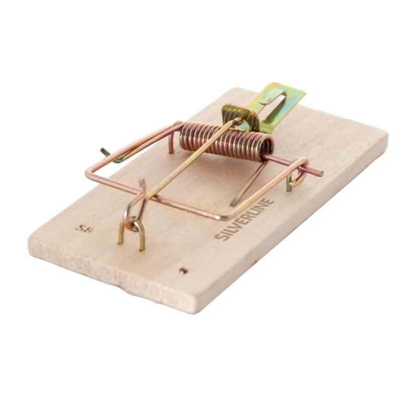 Traditionell slagfälla i kompakt trämaterial med stabil fjäderkonstruktion.