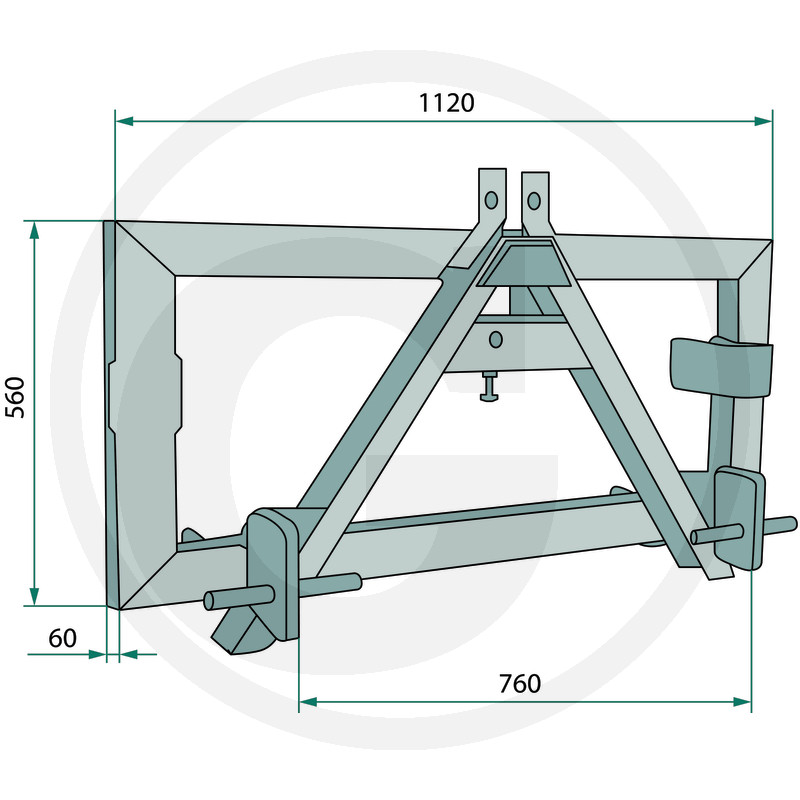 Alla redskap till frontlastare med snabbkopplingsramfäste (EURO-NORM) kan lyftas både med traktorns bak- eller fronthydraulik kat. 2 och trepunktslyft. Belastning upp till 1000 kg