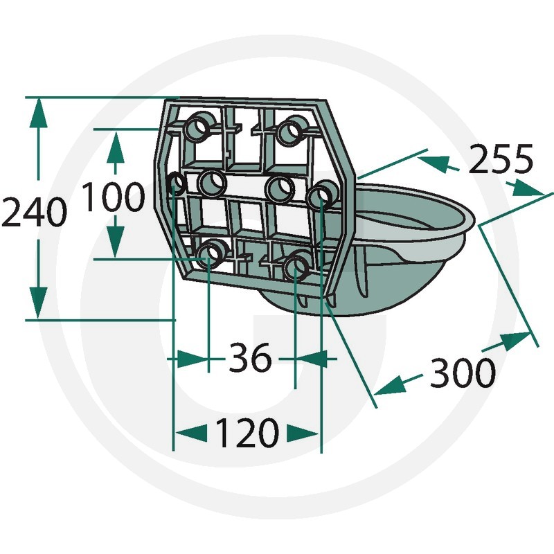 Tråg av högkvalitativ plast. Mässing-rörventil R 1/2" uppifrån och nerifrån.